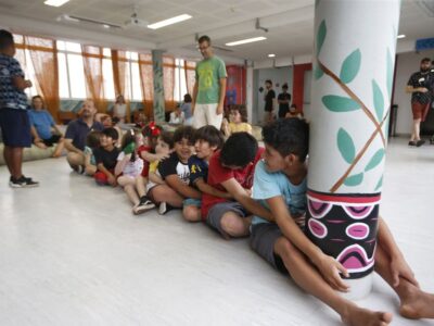 Crianças se divertem com brincadeiras tradicionais guarani
